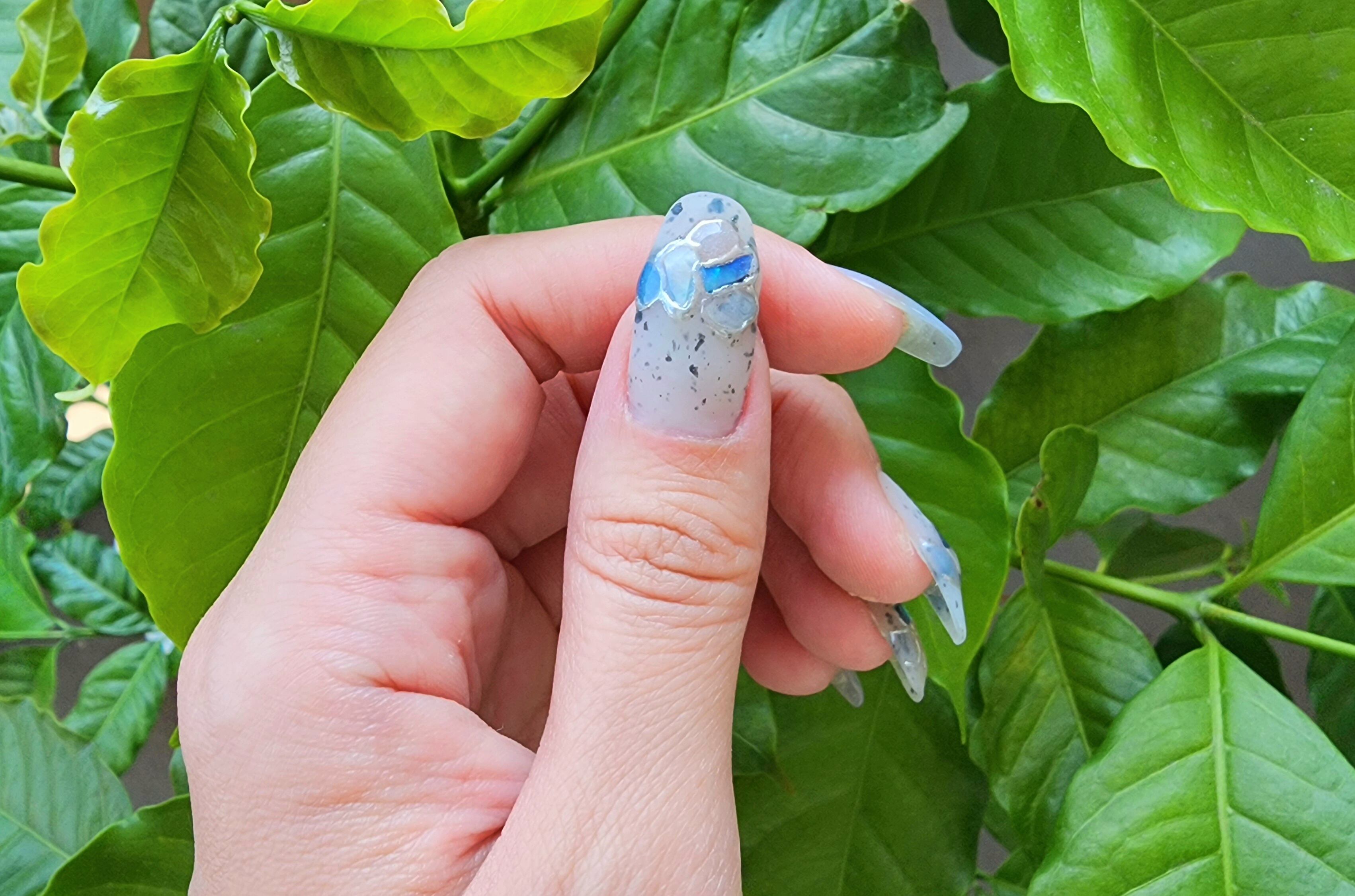 ・ハンドメイド作品のため、ニュアンスネイルデザインが画像と異なることがあります。また、チップのサイズによってデザインやストーンの配置が画像とは異なる場合があります。