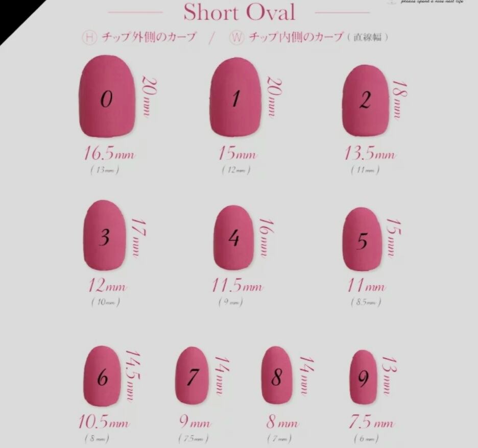 ◯ご注文時にショートスクエア、ショートオーバル、ショートバレリーナ、アーモンド、フットから形を選び、サイズを親指から順に備考欄へご記入ください_